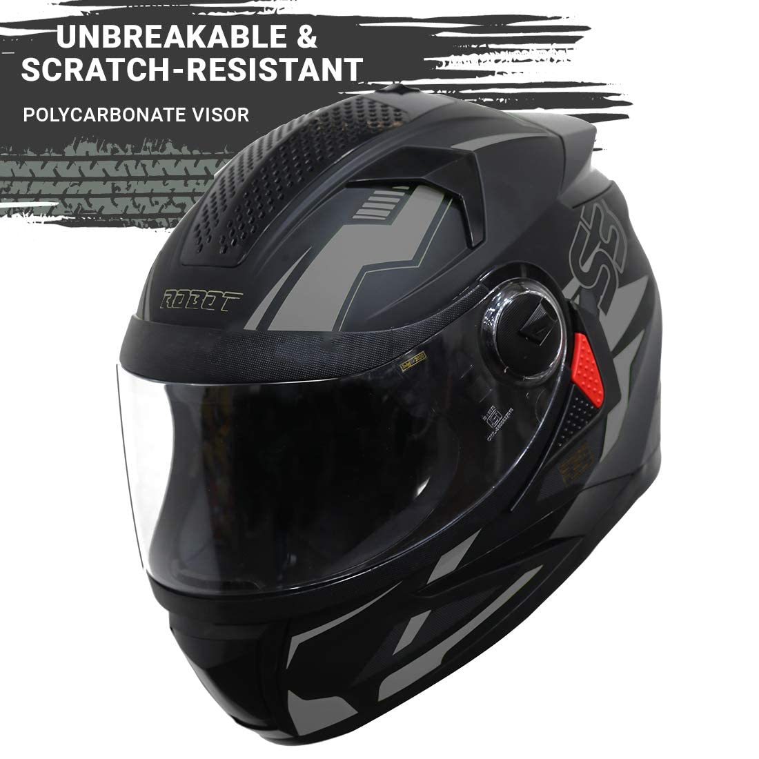 Comes with easy flip up mechanism. Quick release chin guard flipup mechanism with one button.