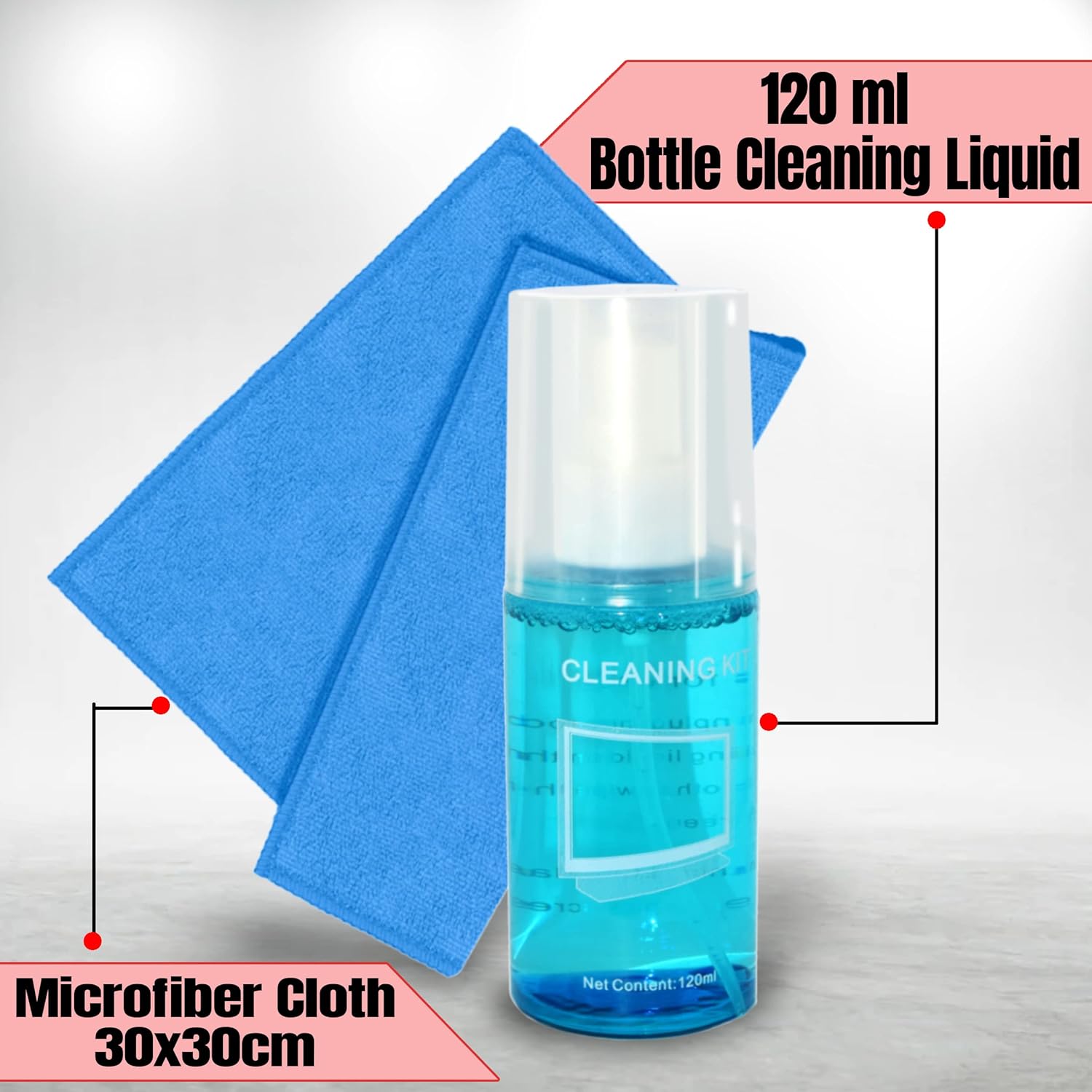 120 ml Bottle Cleaning Liquid & Microfiber cloth Size – 30cm x 30cm.