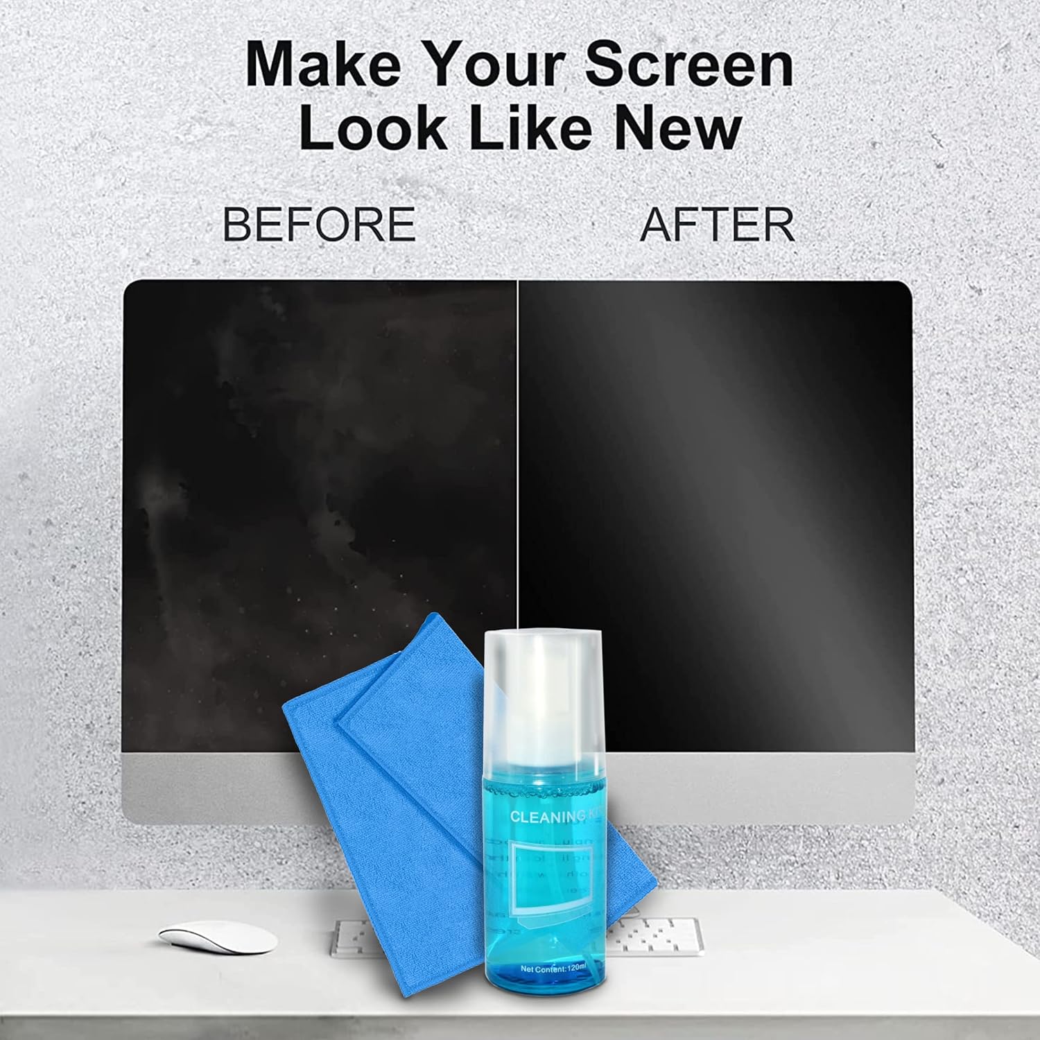 Easy to Use and Eco-Friendly: The cleaning solution is safe and eco-friendly, while the microfiber cloth is reusable and durable, providing long-lasting cleaning power while protecting your screens from damage.