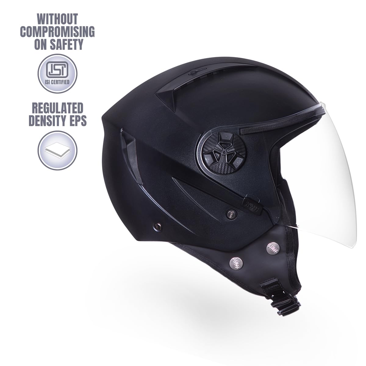 Studds Vogue Eco ISI Certified Open Face Helmet for Men & Women (Black – M), Motorcycling