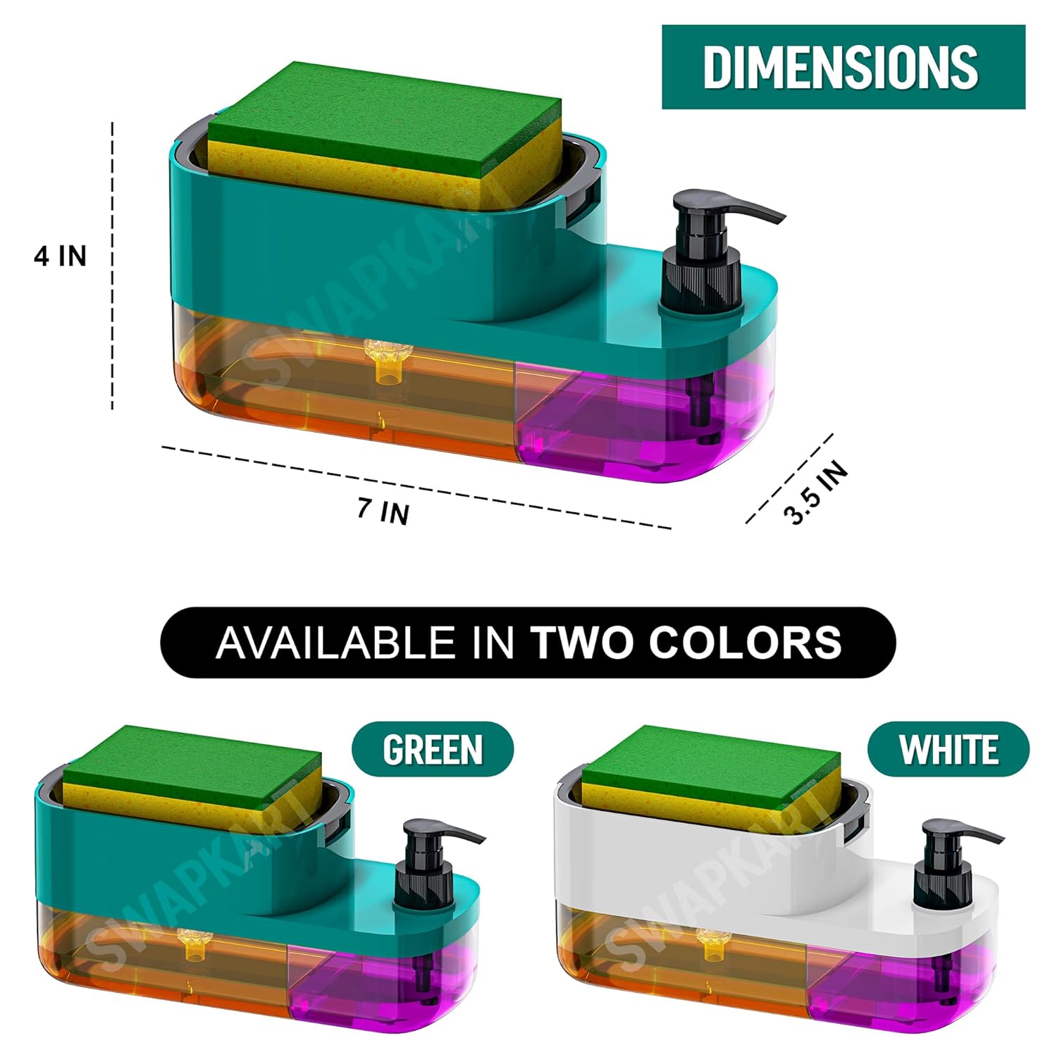 Versatile Design: Features a liquid soap pump, a built-in sponge holder, and a detachable dish for added functionality and convenience.