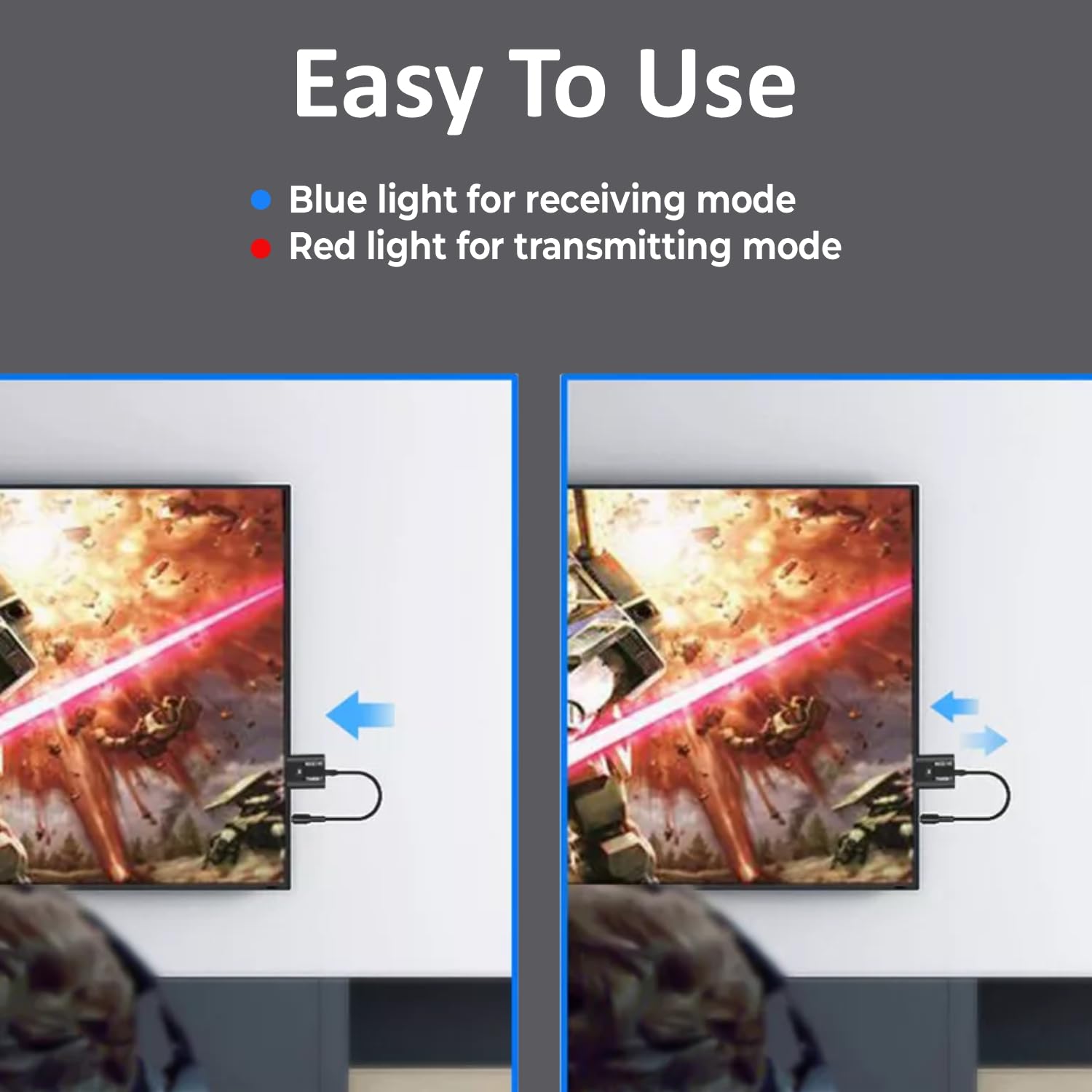 Effortless Setup & Operation: Plug-and-play functionality with no additional power required in Transmitter mode—just connect via your TV’s USB port for easy use without the hassle of extra cords or adapters.