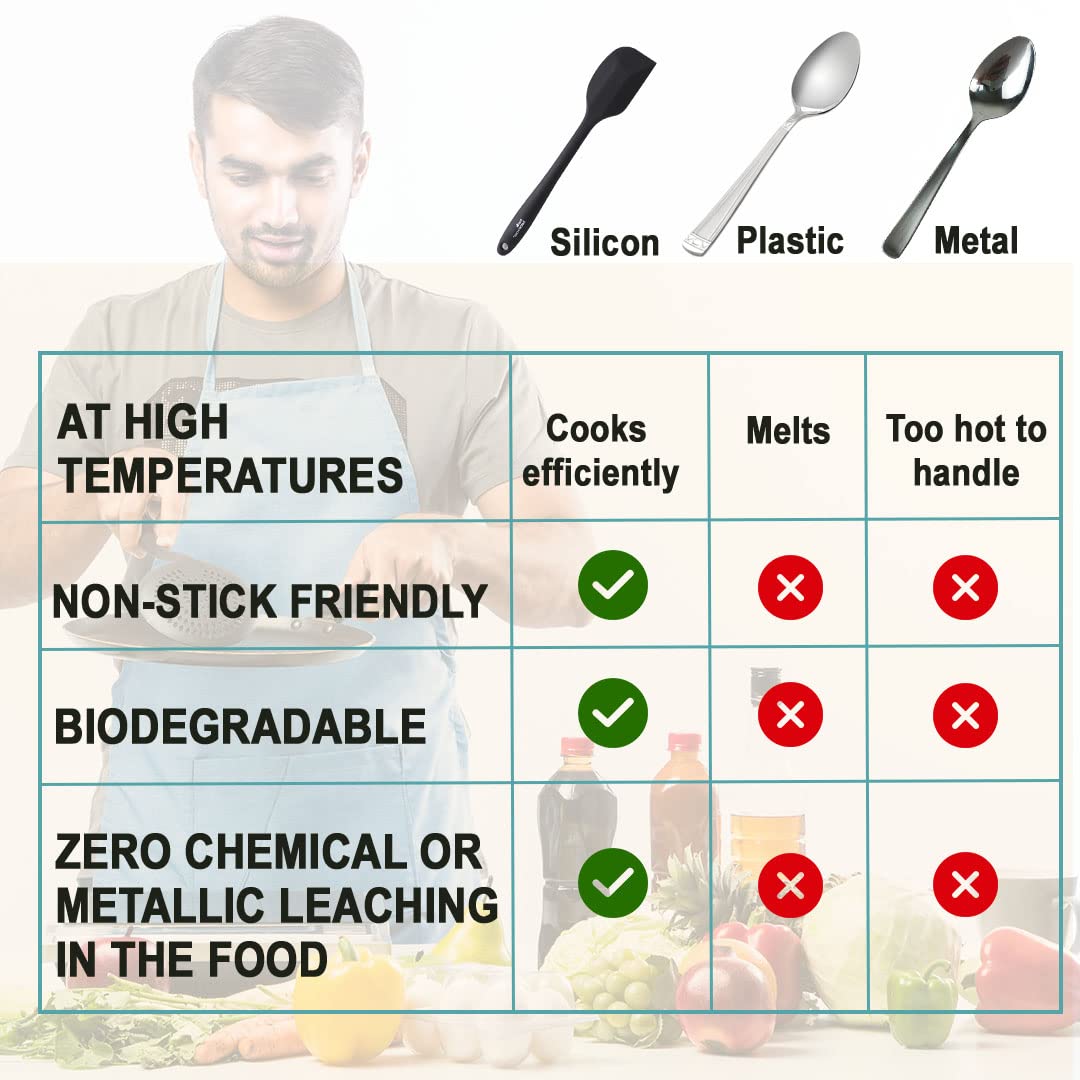 DURABLE & FLEXIBLE: This stylish silicon spatula for kitchen has been thoughtfully designed to have ergonomic handles that are easy to hold and use. Also, the flexible material of this cooking set for kitchen makes them user-friendly and perfect for all your cooking and baking needs.