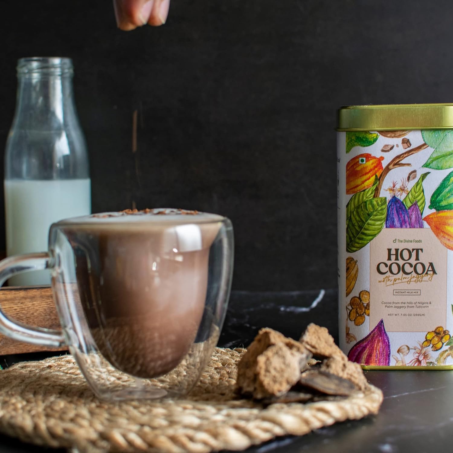 WHY DIVINE FOODS HOT COCOA ?: It is made with finest Palm Jaggery from Tuticorin and cocoa from Nilgiris. has natural ingredients. Vegan, Gluten Free, No Artificial Colour, No Artificial Flavour