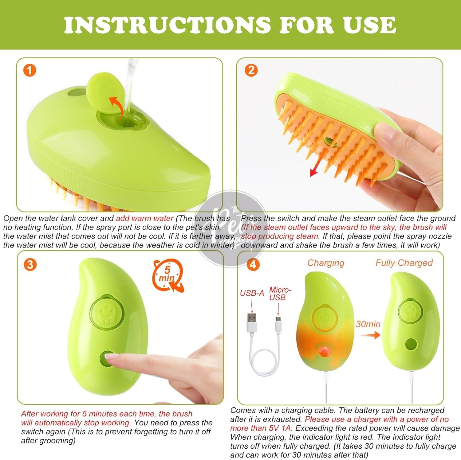 THREE-IN-ONE PET GROOMING BRUSH: The Pets Company pet grooming brush revolutionizes your pet’s grooming experience.This innovative steam massage hair brush is designed to combine the benefits of a traditional pet brush with the enhancing effects of steam and massaging. It has a unique steam vent at the center, this brush ensures a thorough grooming experience, as it penetrates your pet’s fur with a gentle mist, helping soften and detangle while providing a soothing massage.