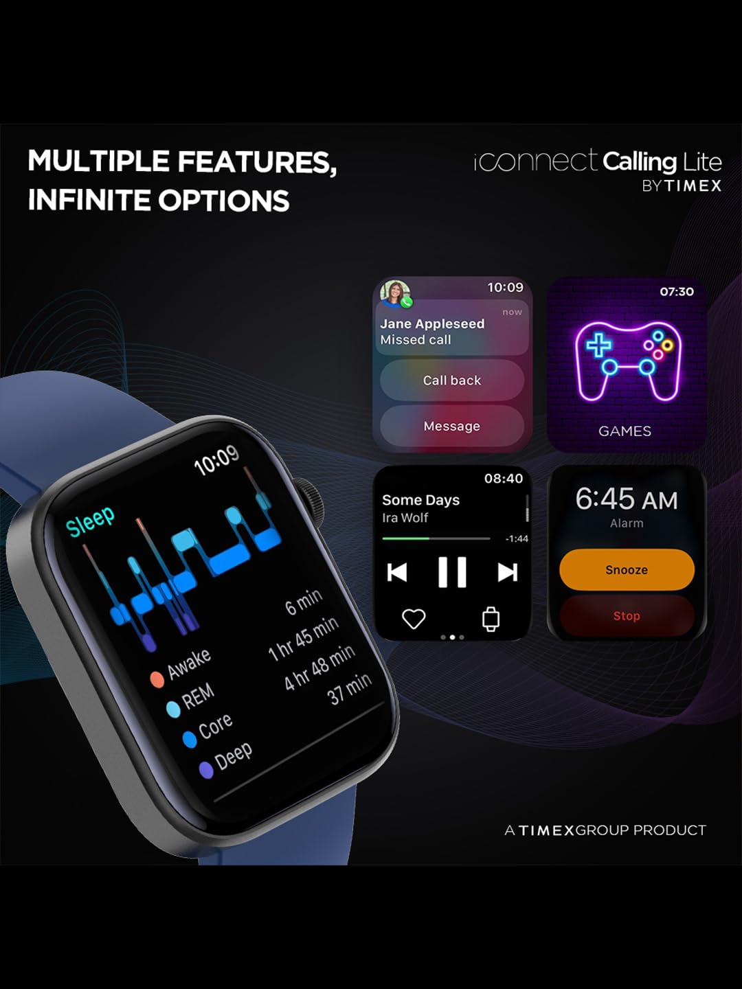 Elevate your wristwear with a smartwatch that does it all. From monitoring your sleep to keeping you entertained with games, managing alarms, receiving message notifications, and enjoying your favorite tunes, it’s your ultimate all-in-one companion.