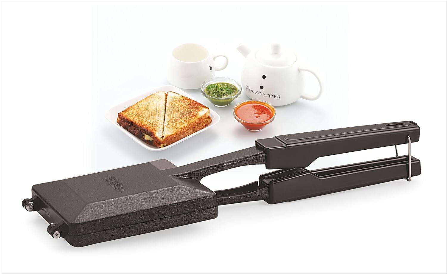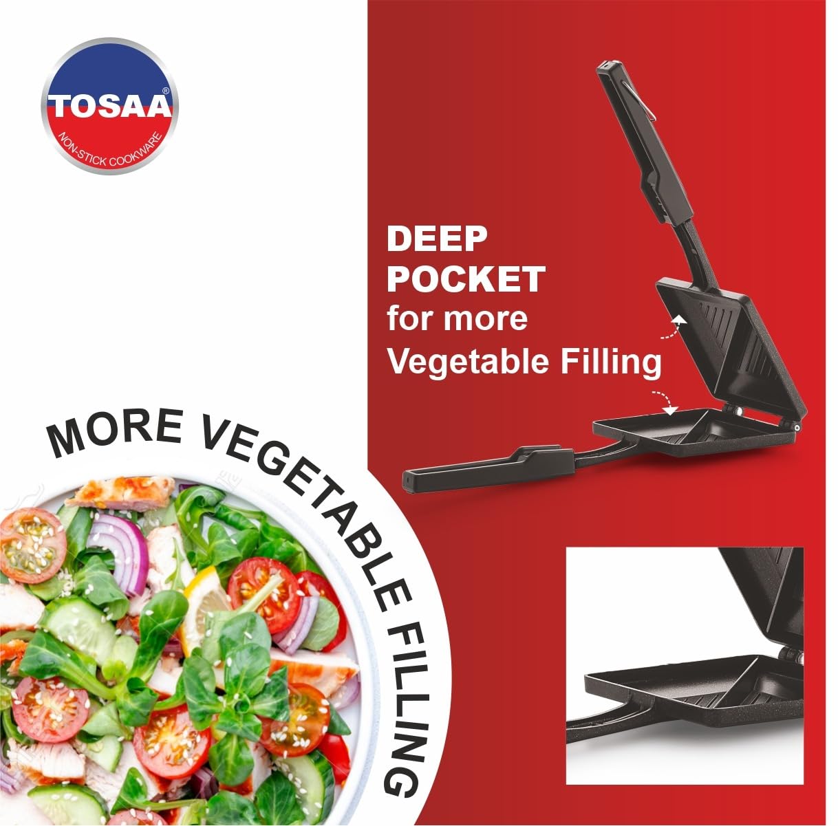 Tosaa – TSTDUET Duet 2-Cut Gas Sandwich Toaster Non-Stick Aluminium | Compatibility with Gas Stoves | Flame-Proof Design | Heat-Resistant Handle | Sandwich Maker | Black