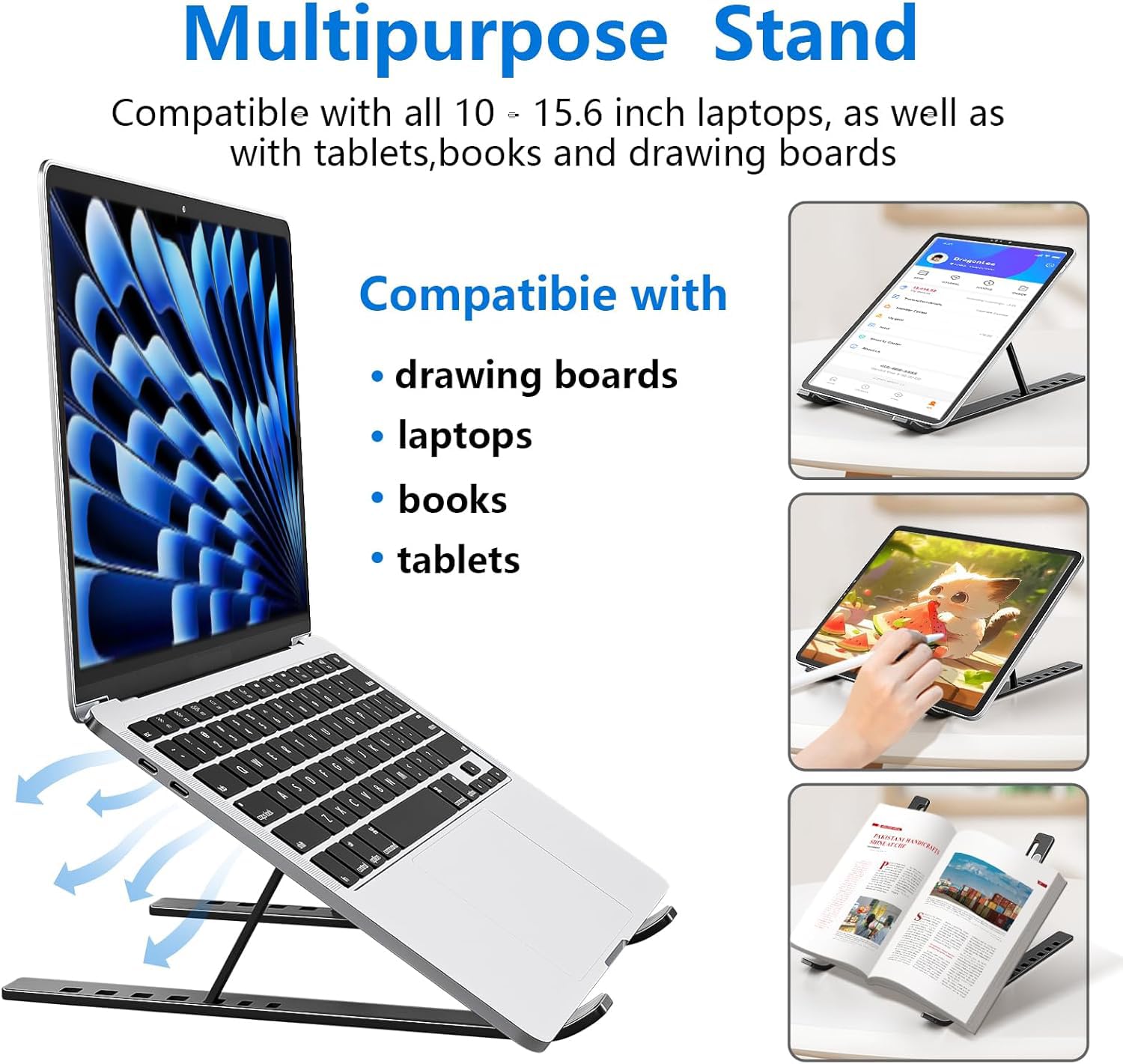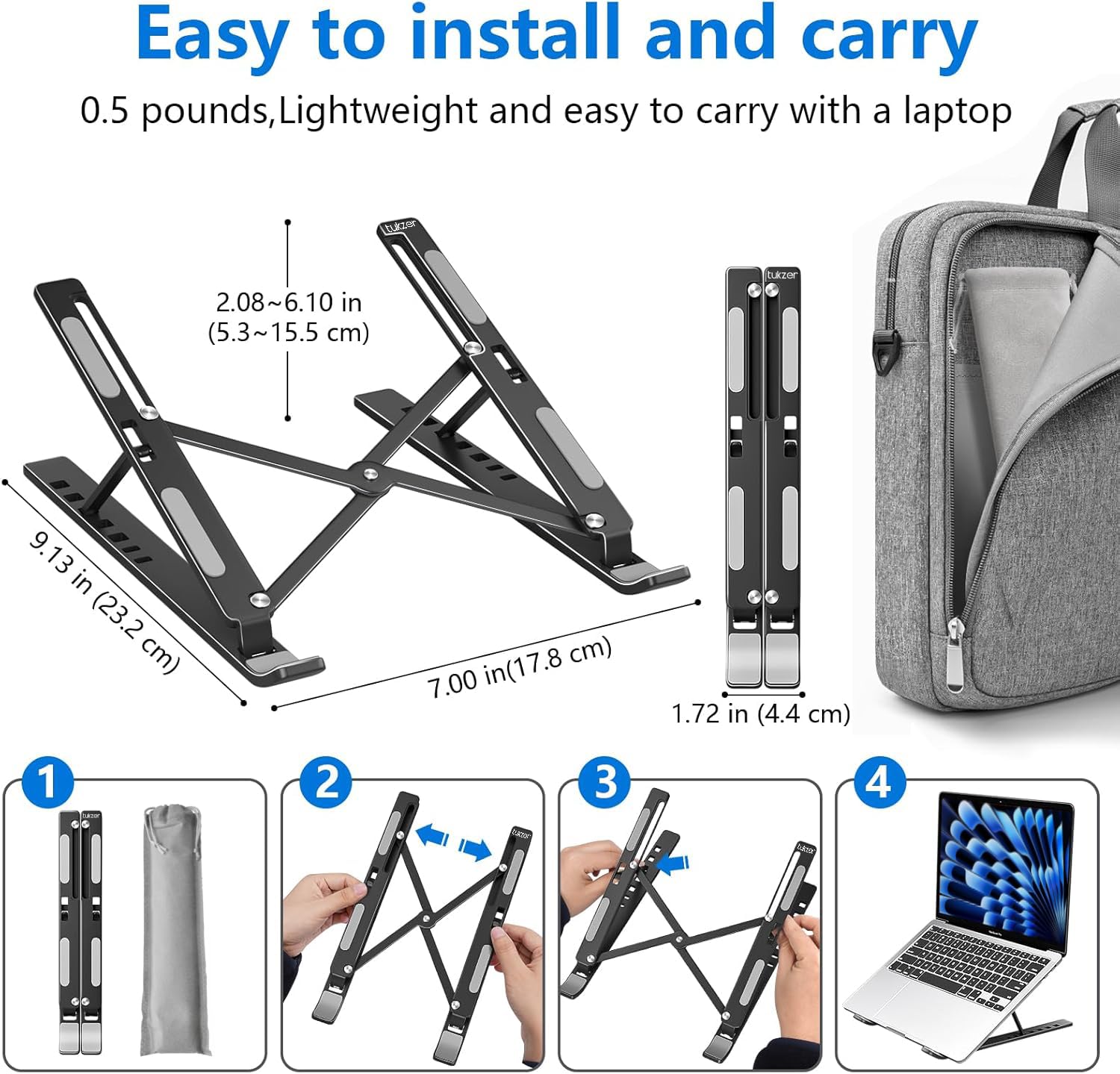 Adjustable & Portable: Tukzer’s Laptop Stand Offers 7 Levels of Height and Angle Adjustment, Providing Personalized Comfort for Users. It’s Foldable & Shrinkable Design Ensures Easy Carrying, Ideal for Daily Work and Travel.