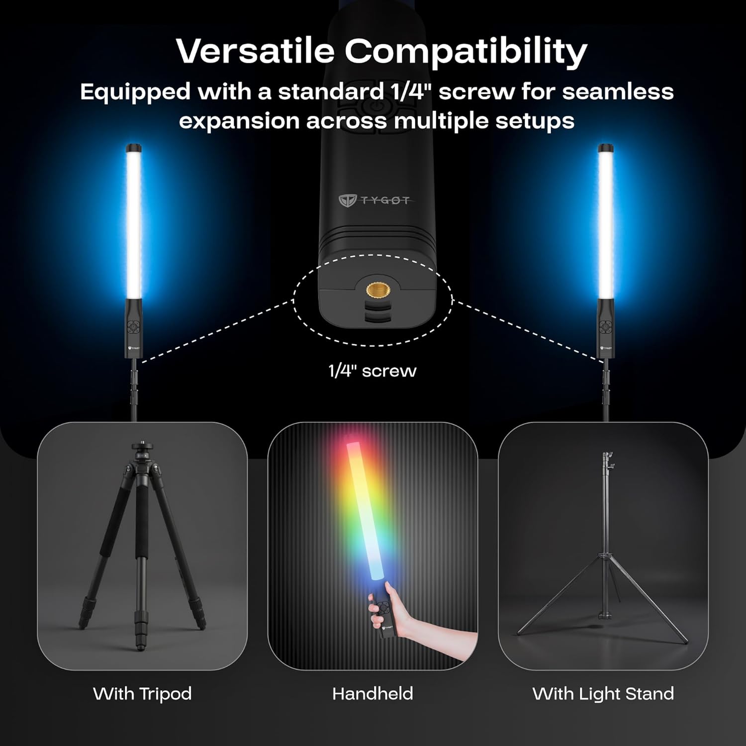 Universal 1/4” Screw Mount Compatibility: Equipped with a 1/4” screw hole at the bottom, this stick light seamlessly mounts on tripods, stands, and other accessories for stable, hands-free lighting