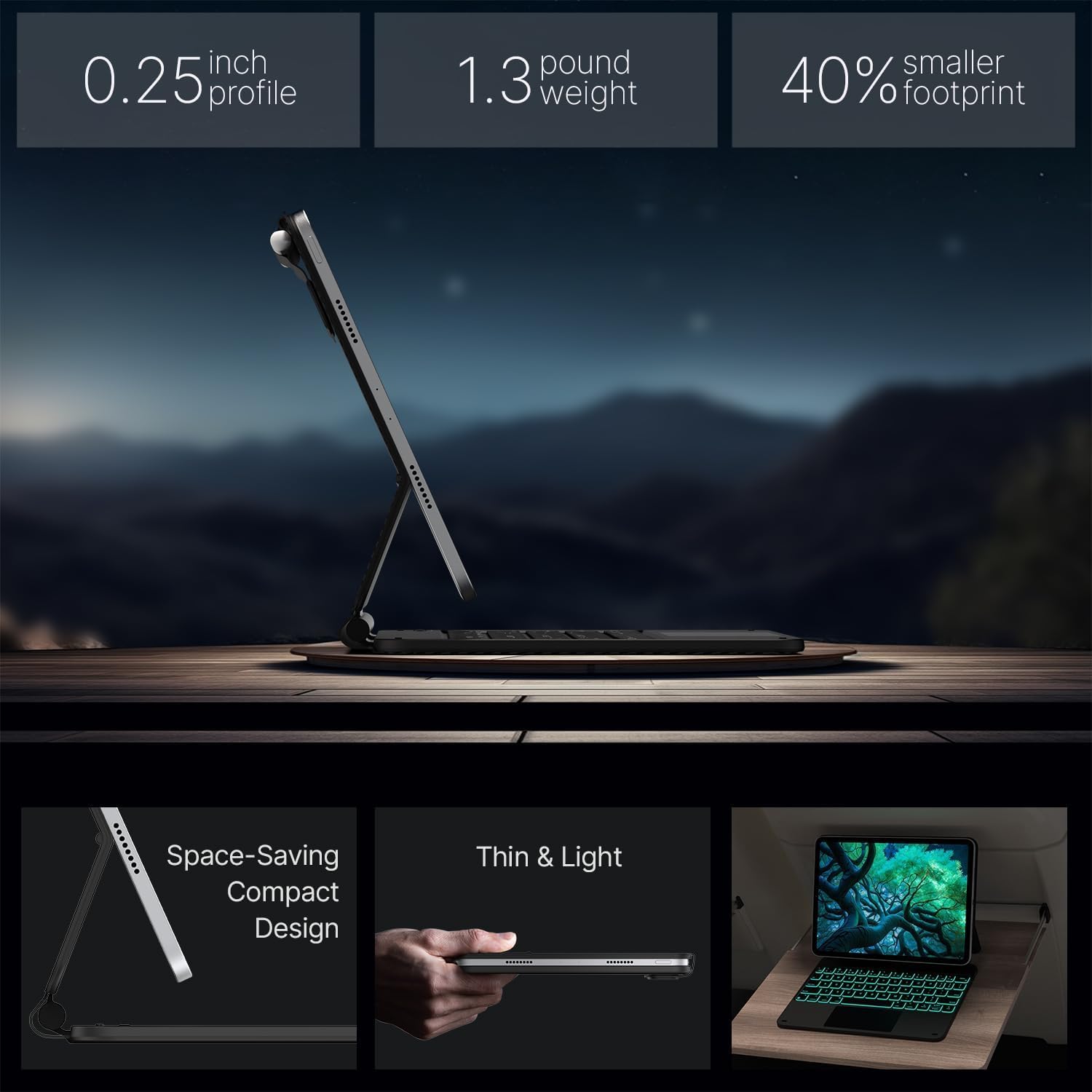 𝗦𝗹𝗲𝗲𝗸 𝗧𝗿𝗮𝗻𝘀𝗳𝗼𝗿𝗺𝗮𝘁𝗶𝗼𝗻, 𝗪𝗵𝗲𝗿𝗲𝘃𝗲𝗿 𝗬𝗼𝘂 𝗚𝗼:Magnetically morph your iPad into a sleek laptop within seconds. Perfect for on-the-go moments and unleashing creativity on your terms.