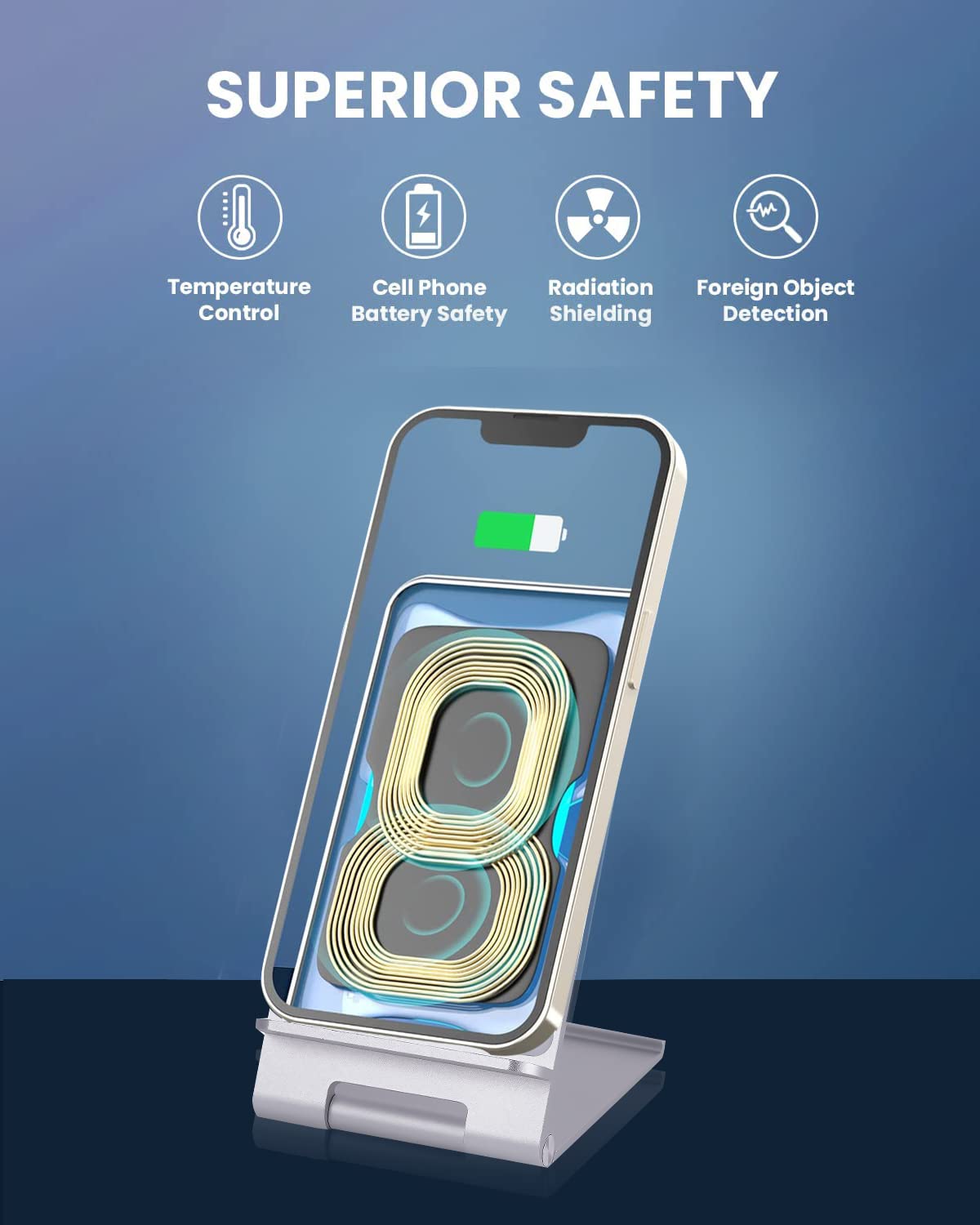 Wide Compatibility: Compatible with iPhone 16/15/14/13/12, as well as all Qi-enabled devices, including Samsung Galaxy S23/22/21/20/10/9.