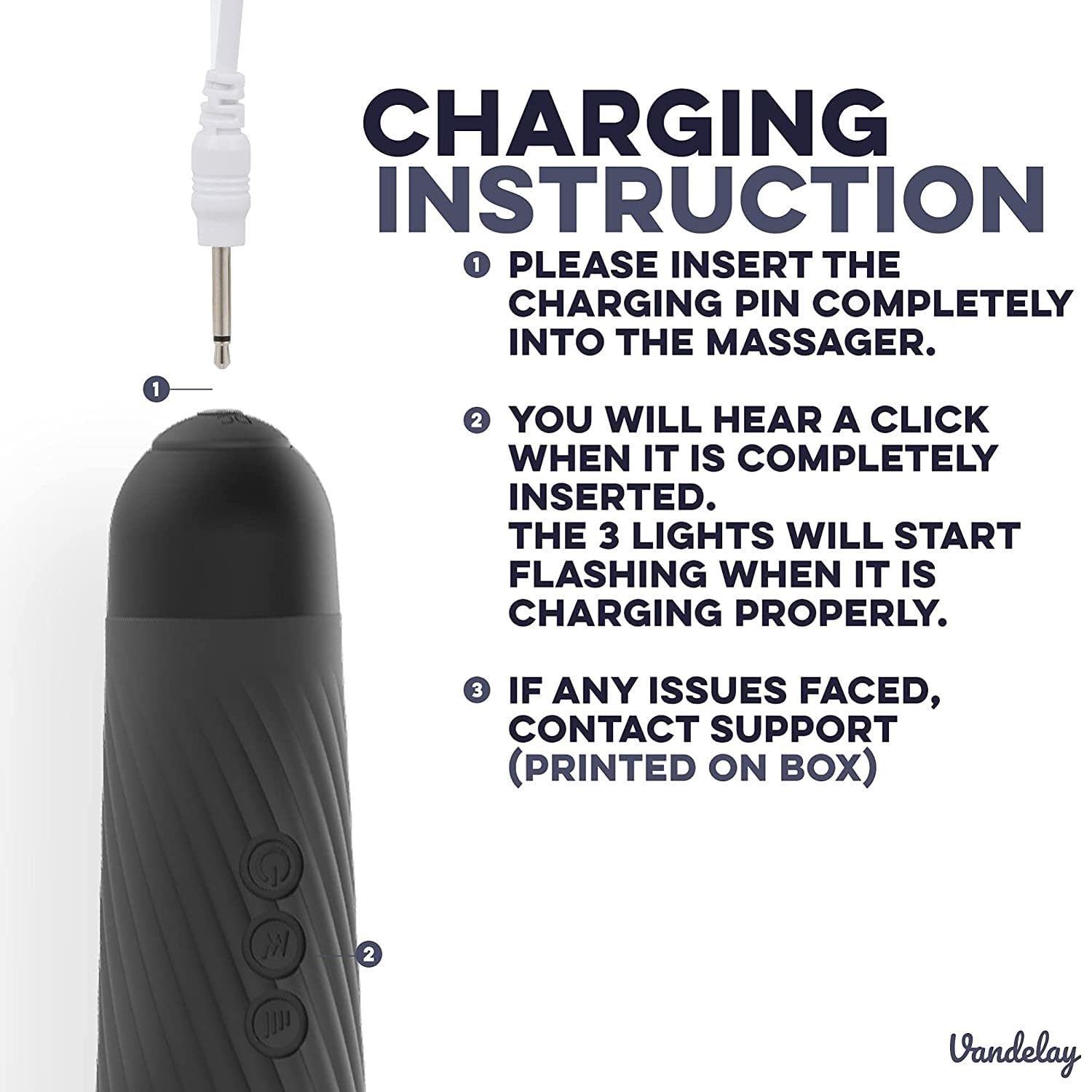 Vandelay Rechargeable Body Massager for Pain Relief – 20 Vibration Modes & 8 Speed Levels – Waterproof & Portable Design – Long-Lasting Battery – Cool Black
