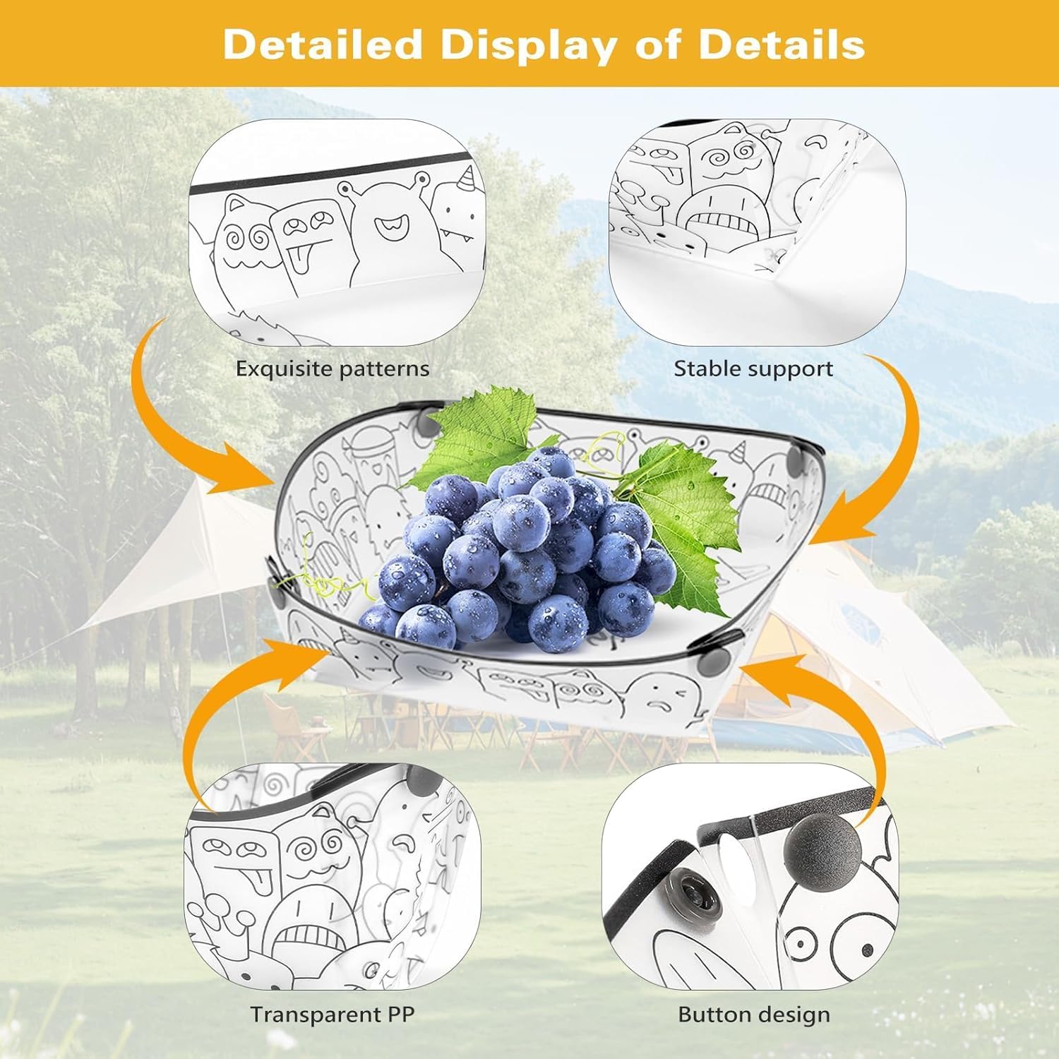 Fun Cartoon Pattern – Unique doodle designs bring a playful vibe to your outdoor or indoor meals.