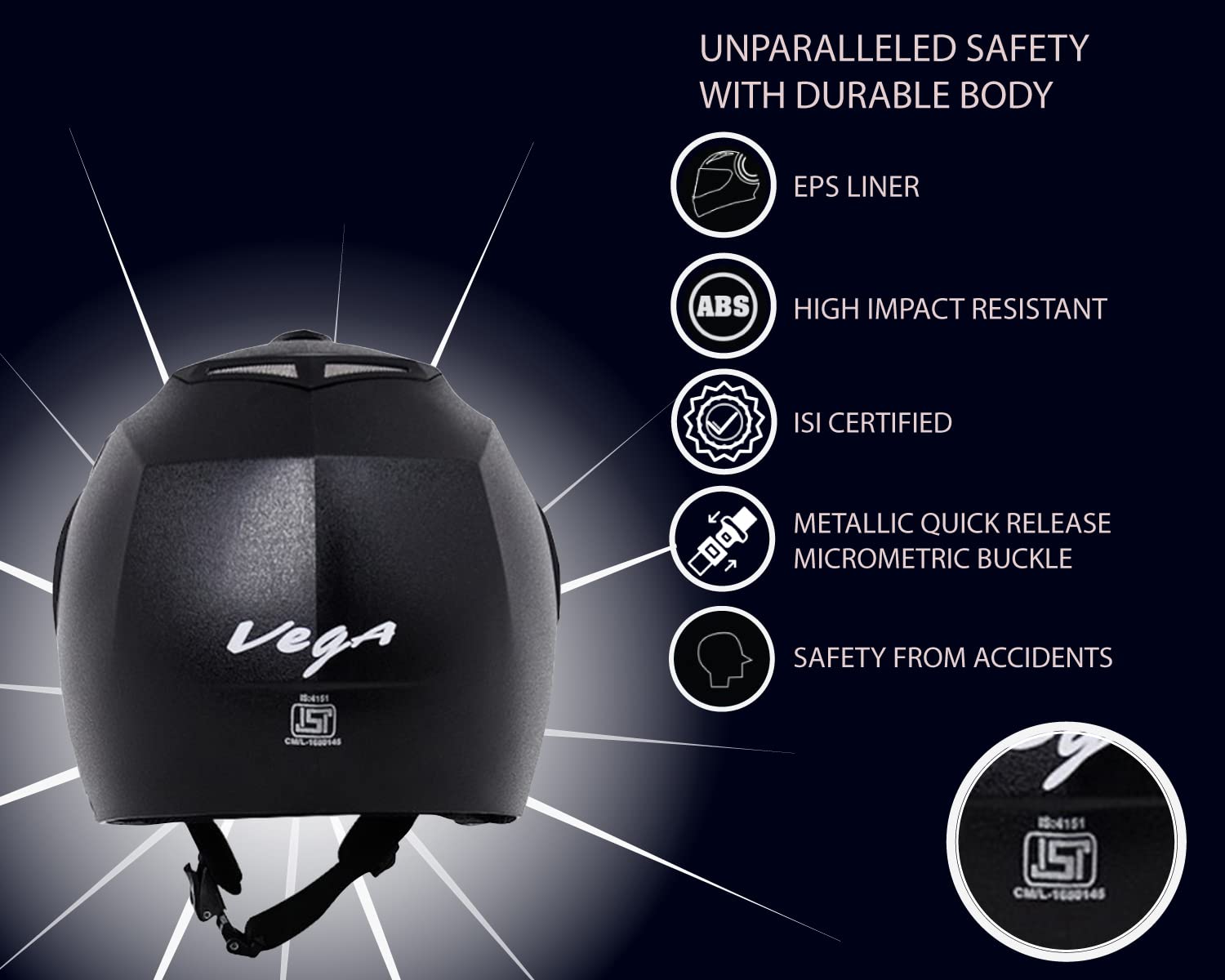 Material: The helmet has a High Impact ABS material shell, offering durability and protection. Certification: It is ISI Certified, confirming it meets safety standards.