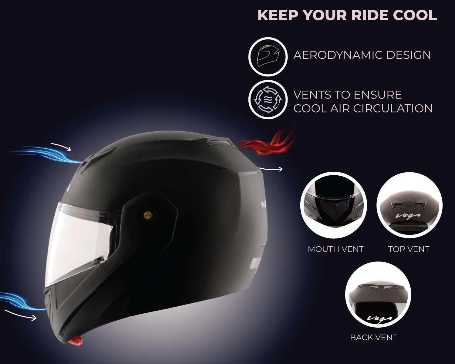 Ventilation: The helmet includes 1 Top Vent, 1 Mouth Vent And 1 Back Exhaust Vents.