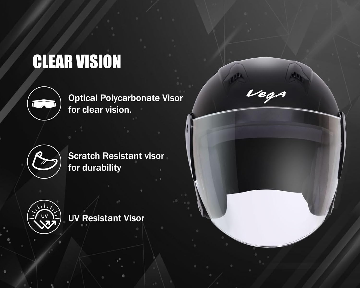 Visor: The visor is scratch-resistant and UV-resistant, made from optical polycarbonate with a quick-release mechanism for smooth visor changes.