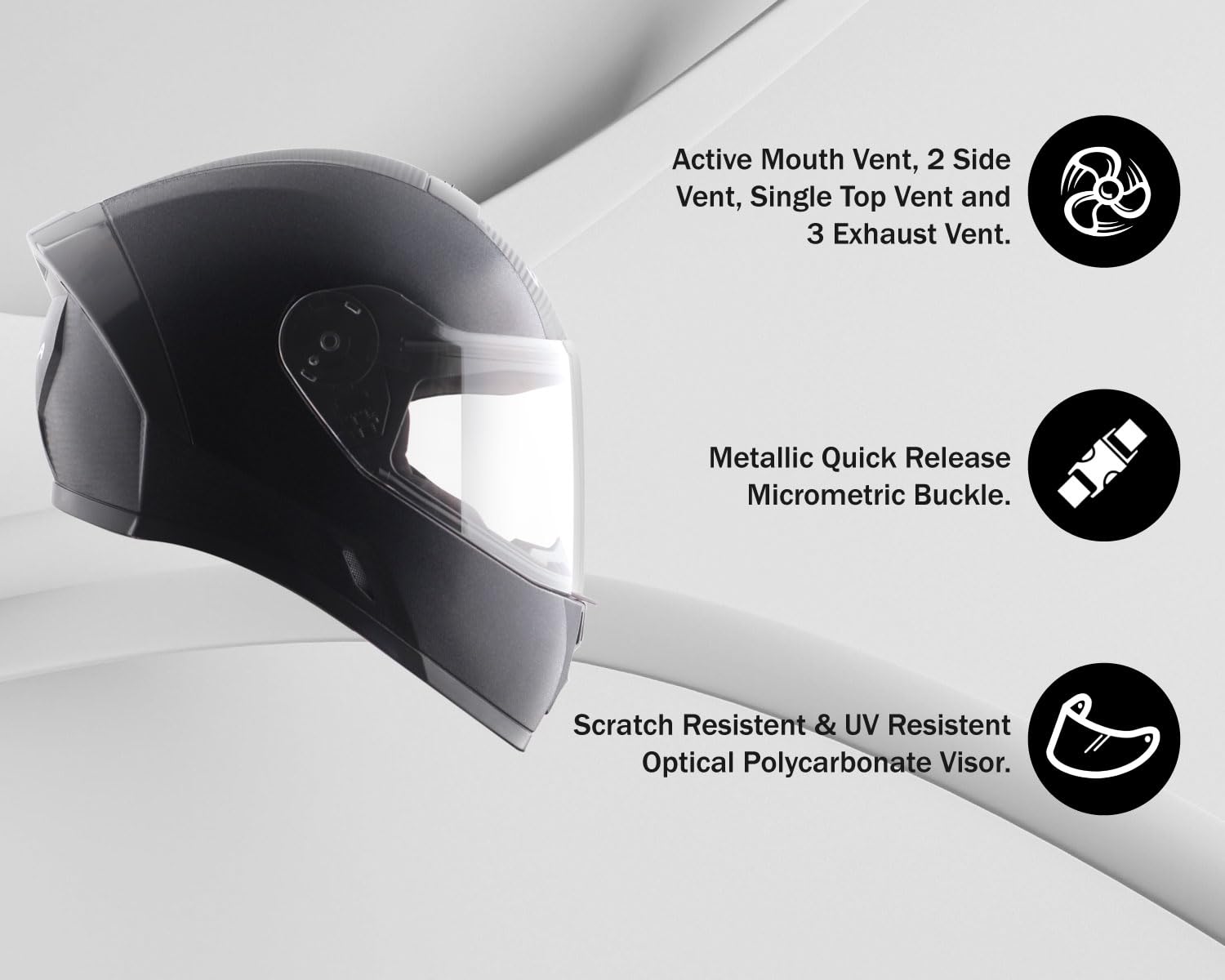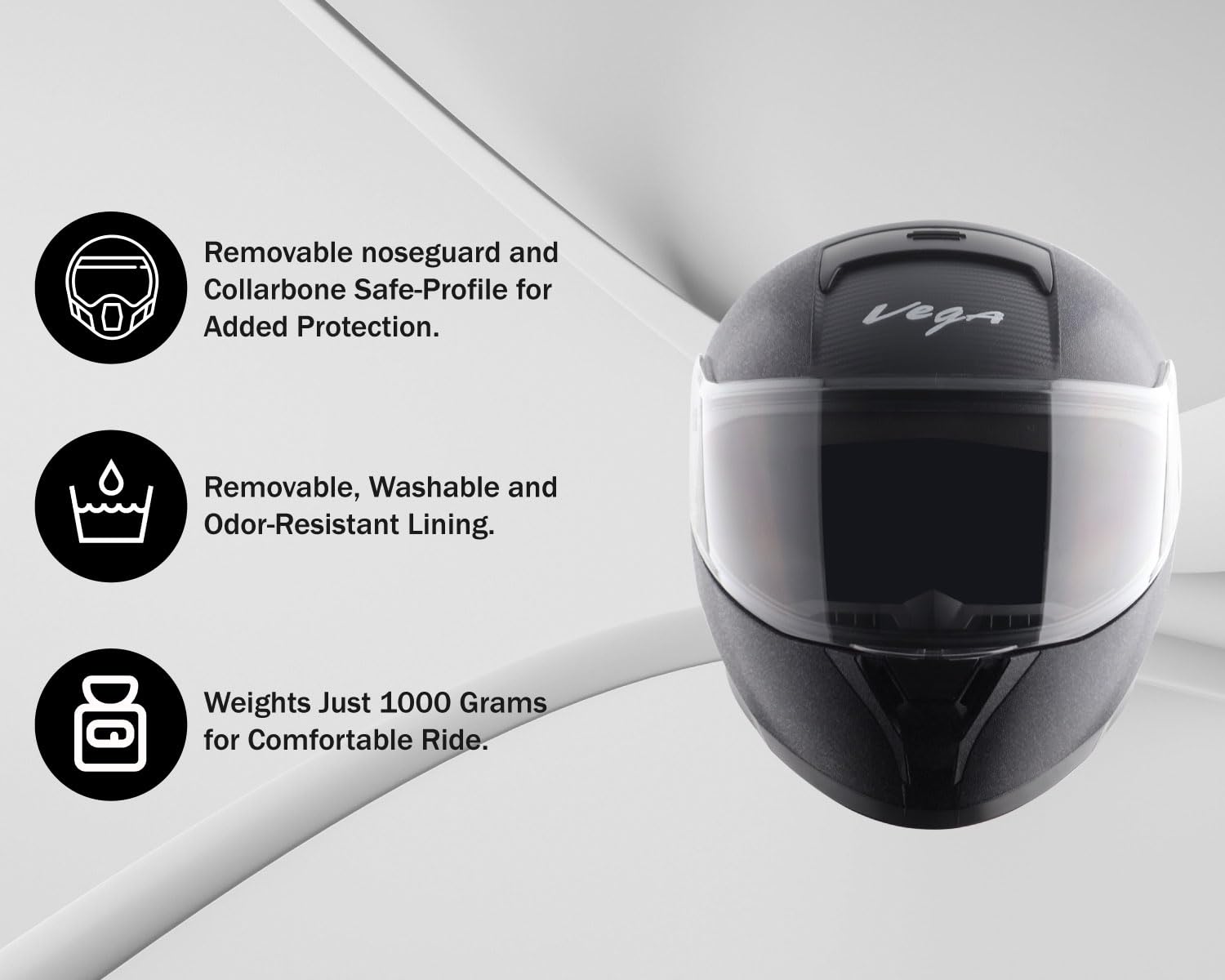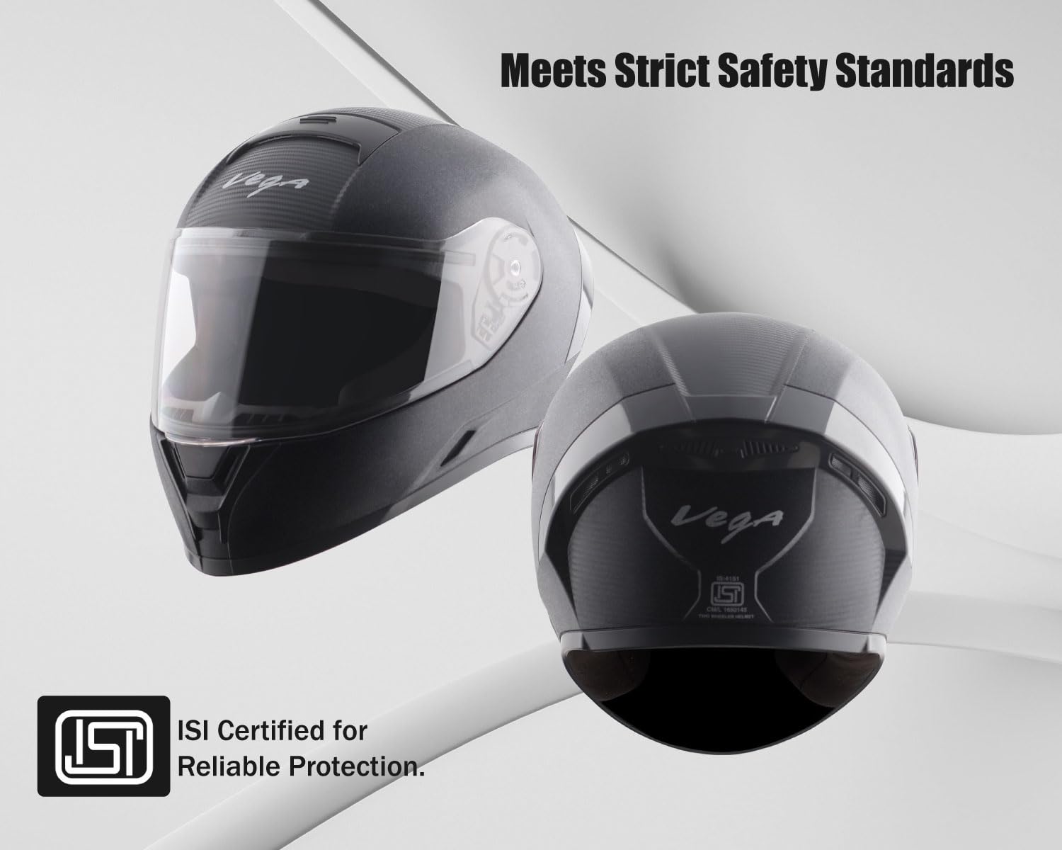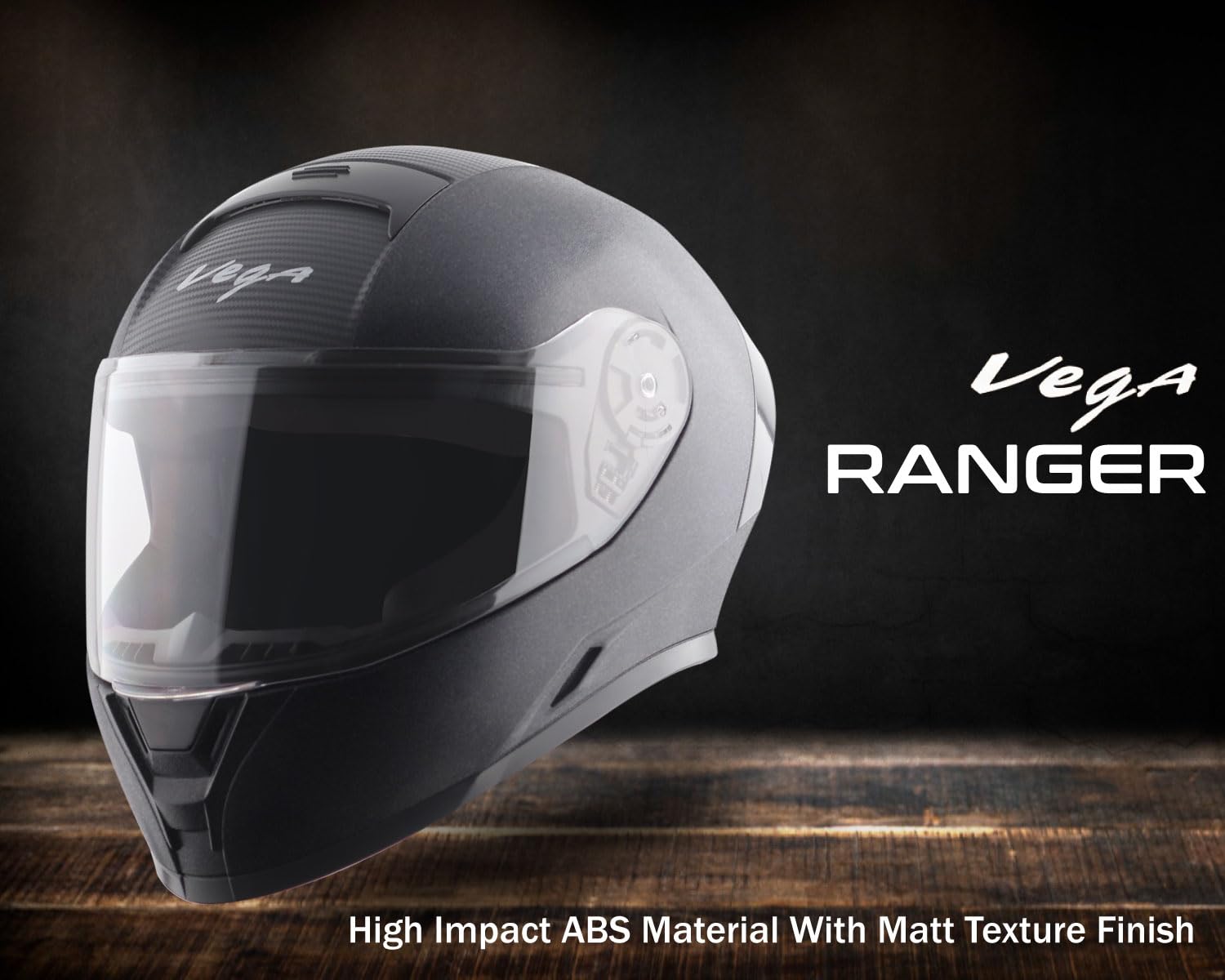 Vega Ranger ISI Certified Texture Finish Lightweight Full Face Helmet for Men and Women with Scratch and UV Resistant Clear Visor-Black-M