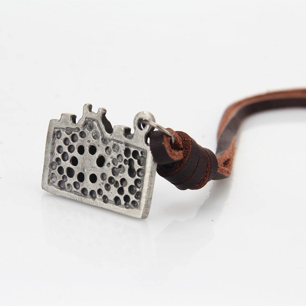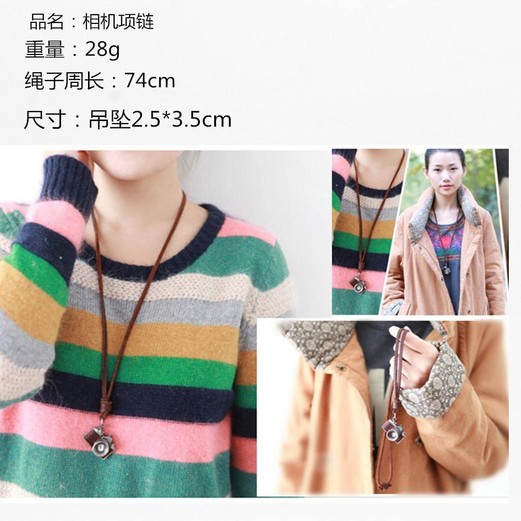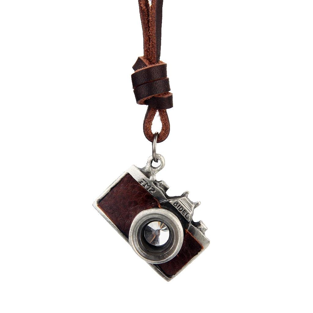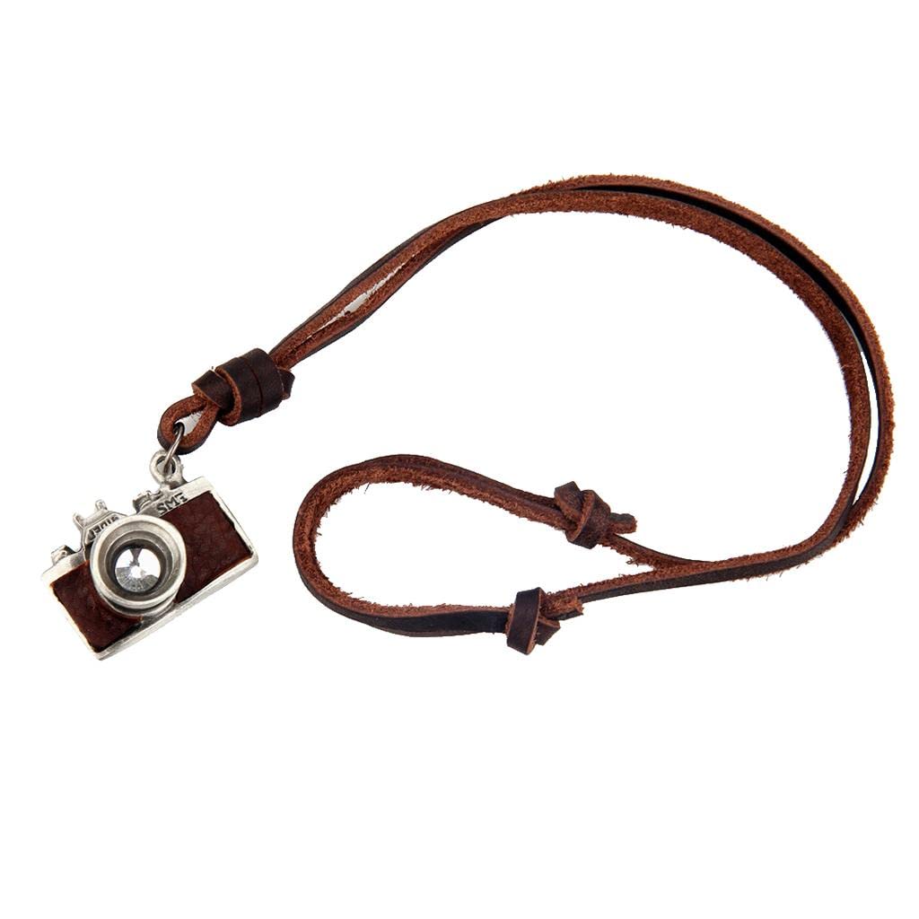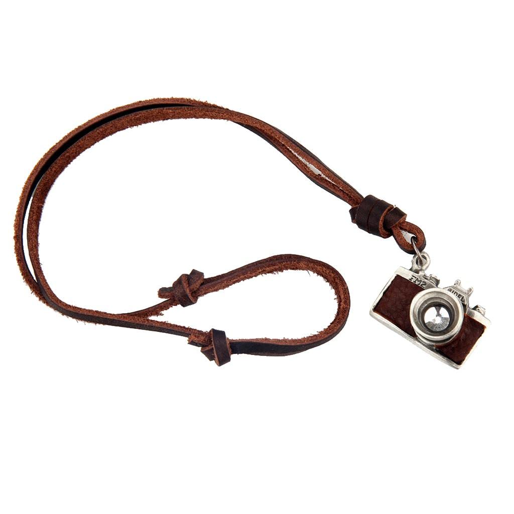 Vintage photography camera pendant design necklace with long leather chain