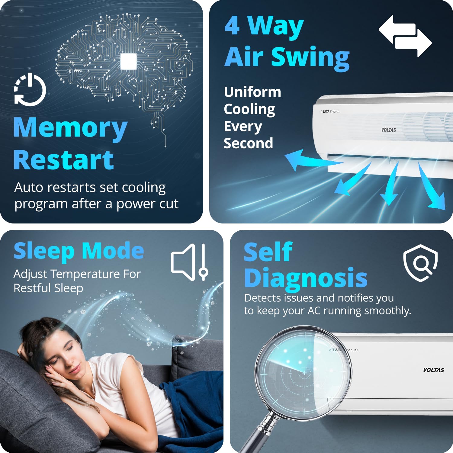 With wide voltage range operation, this Voltas AC can function efficiently even during voltage fluctuations. This prevents damage caused by unstable power supply.