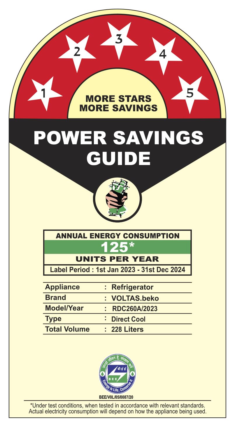 5 Star: Best in class efficiency; Annual Energy Consumption: 125 KWH (T&C apply, pls refer BEE lebel)