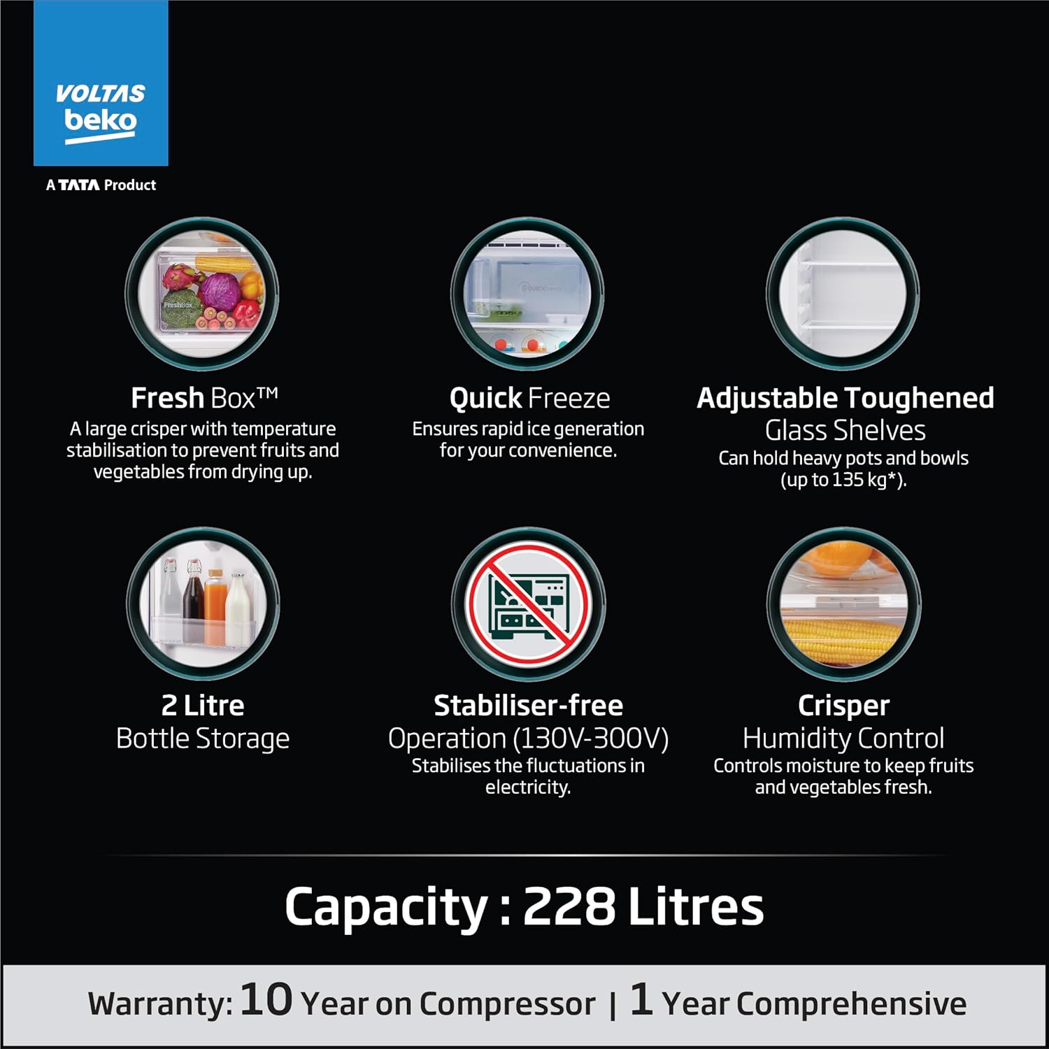 Capacity – 228 ltrs : Suitable for small family members