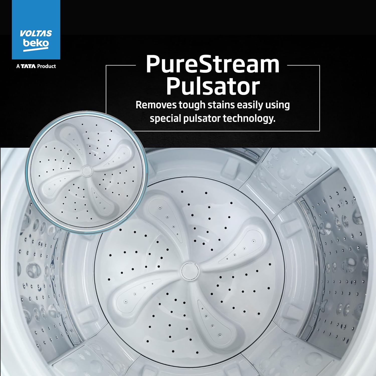 The Pure Stream Pulsator creates strong water movements that help clean clothes deeply. It moves water in different directions to remove dirt gently and evenly. This helps protect fabric while giving a thorough wash.