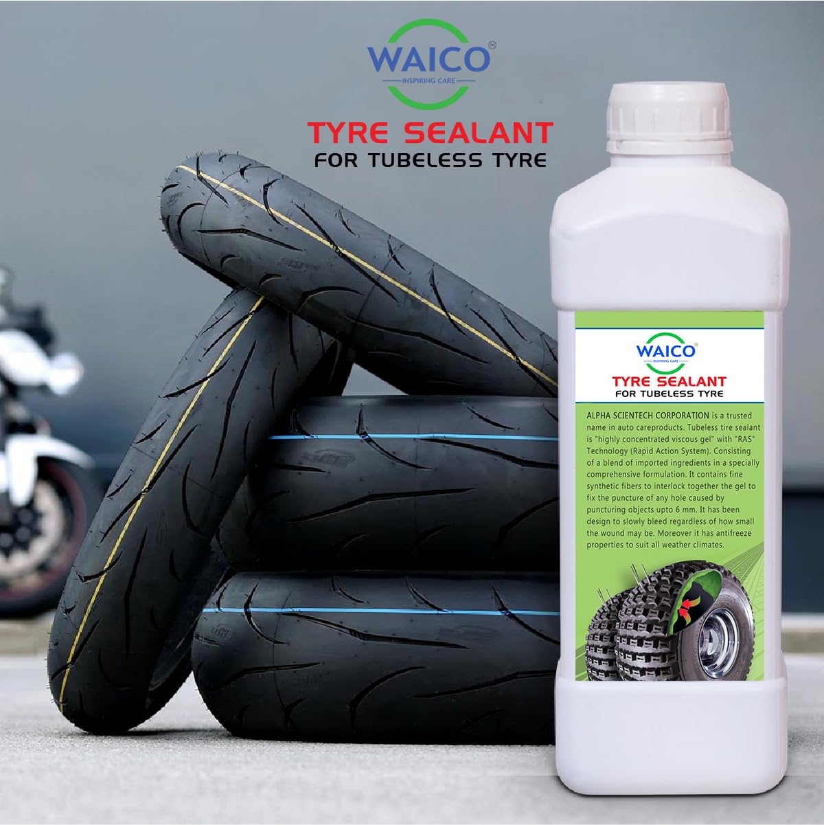 Pack Convenience: Packaged in 800mL containers, WAICO’s Tubeless Tyre Sealant offers users the convenience of multiple applications or usage across different vehicles, promoting an efficient and cost-effective solution.