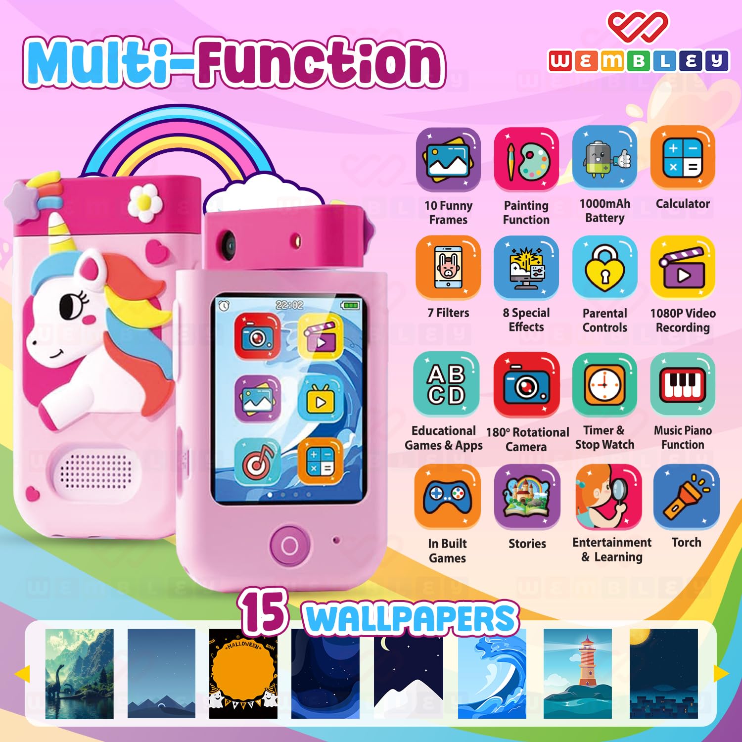 Wembley My First Smart Phone| Mini Toy Mobile for Kids Age 3+| Adorable, Educational & Fun | with Rotating Camera & Strong Battery| Perfect for Boys & Girls (Unicorn)