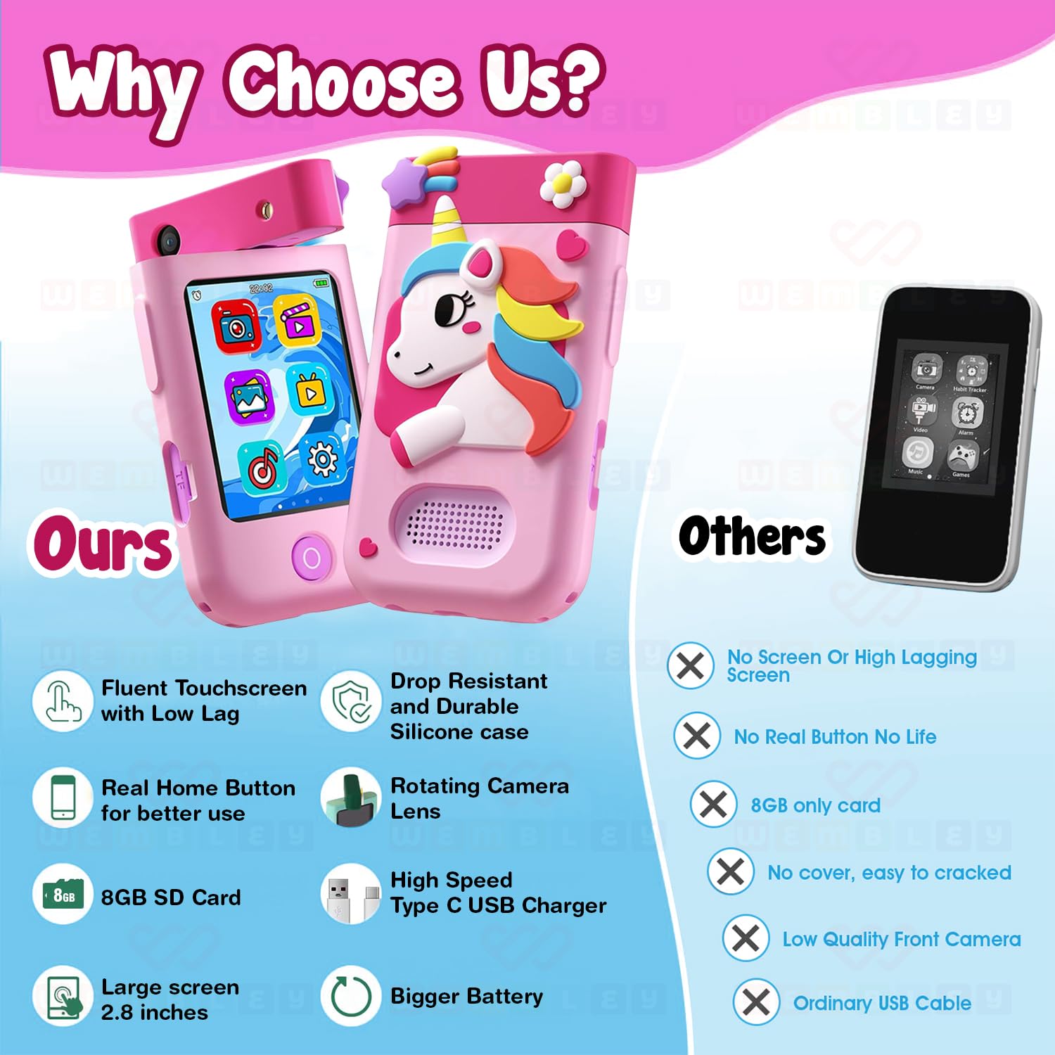 Wembley My First Smart Phone| Mini Toy Mobile for Kids Age 3+| Adorable, Educational & Fun | with Rotating Camera & Strong Battery| Perfect for Boys & Girls (Unicorn)