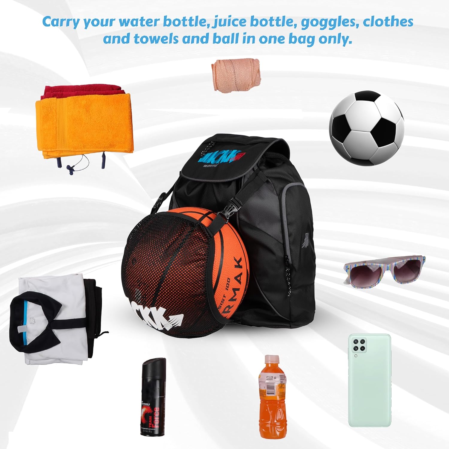 Introducing Whackk Storm Soccer Volleyball Basketball kit bag, designed for those who demand both functionality and durability. The front features a foldable netted pocket perfect for securing any ball or helmet, while the central compartment provides ample space for clothes and other football gear. The top pocket keeps your wallet, power bank, and keys within easy reach, complemented by a side pocket for your mobile phone, earphones, or other accessories. Additionally, a bottle holder ensures you stay hydrated. The drawstring closure allows for fast and easy access to your essentials. Crafted from extra durable, high-quality polyester fabric with advanced YKK zippers, this water-resistant and air-ventilated backpack is lightweight suitable for football, volleyball, basketball, and more. This backpack is designed to meet all your needs, ensuring you’re always prepared for the game.