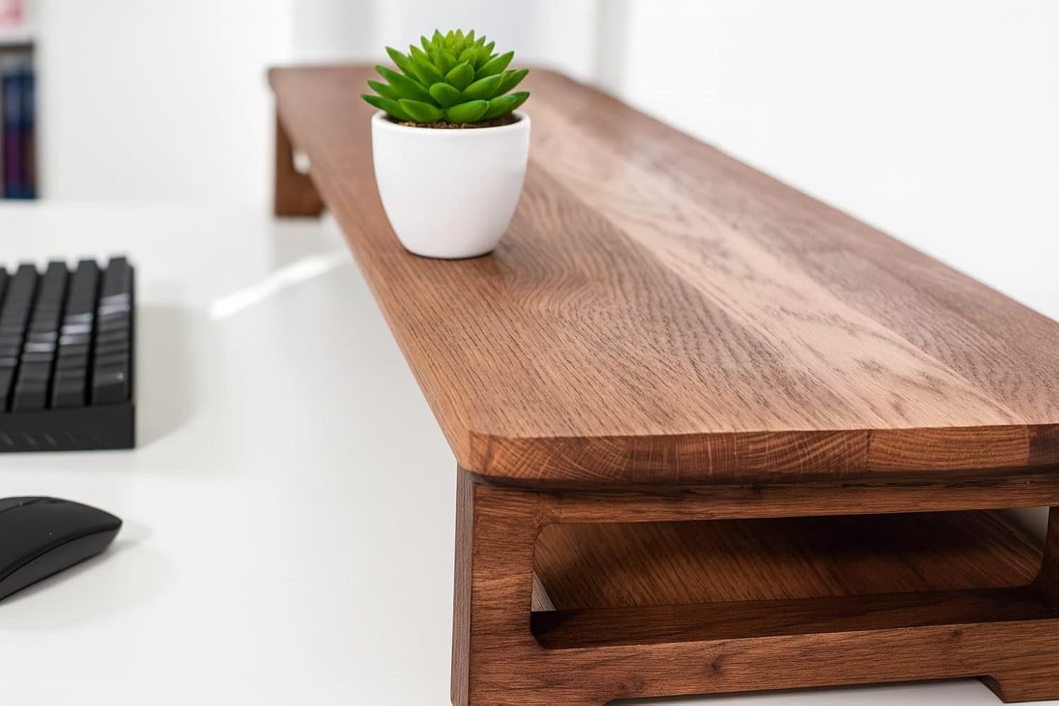 wooden friend 66cm Long Wooden Monitor Stand with Storage Organizer for Desk, Tables, Office, Home, Studio, Study Table | Desktop Ergonomic Monitor Stand Riser 66x20x11cm (Black Legs)