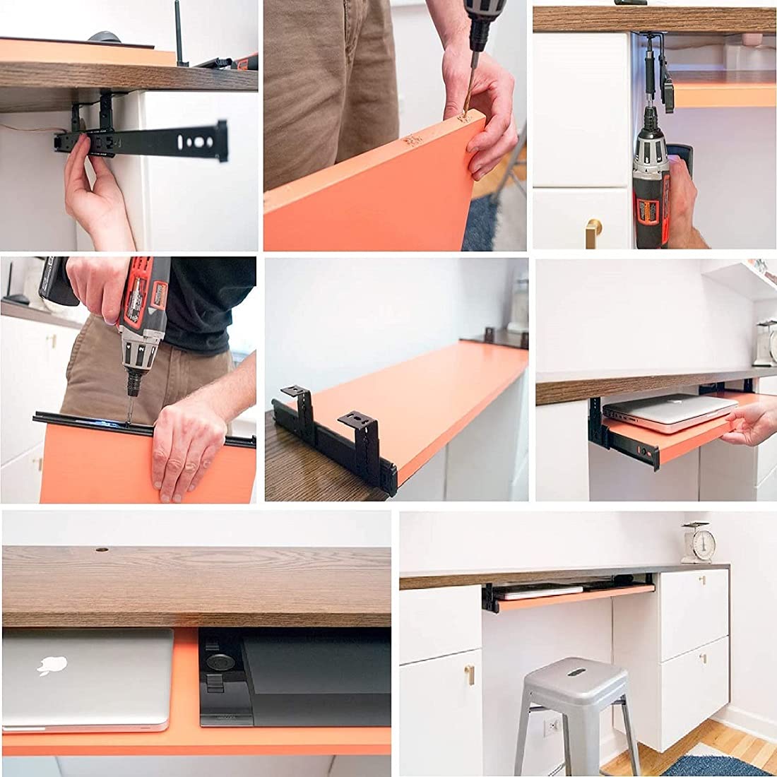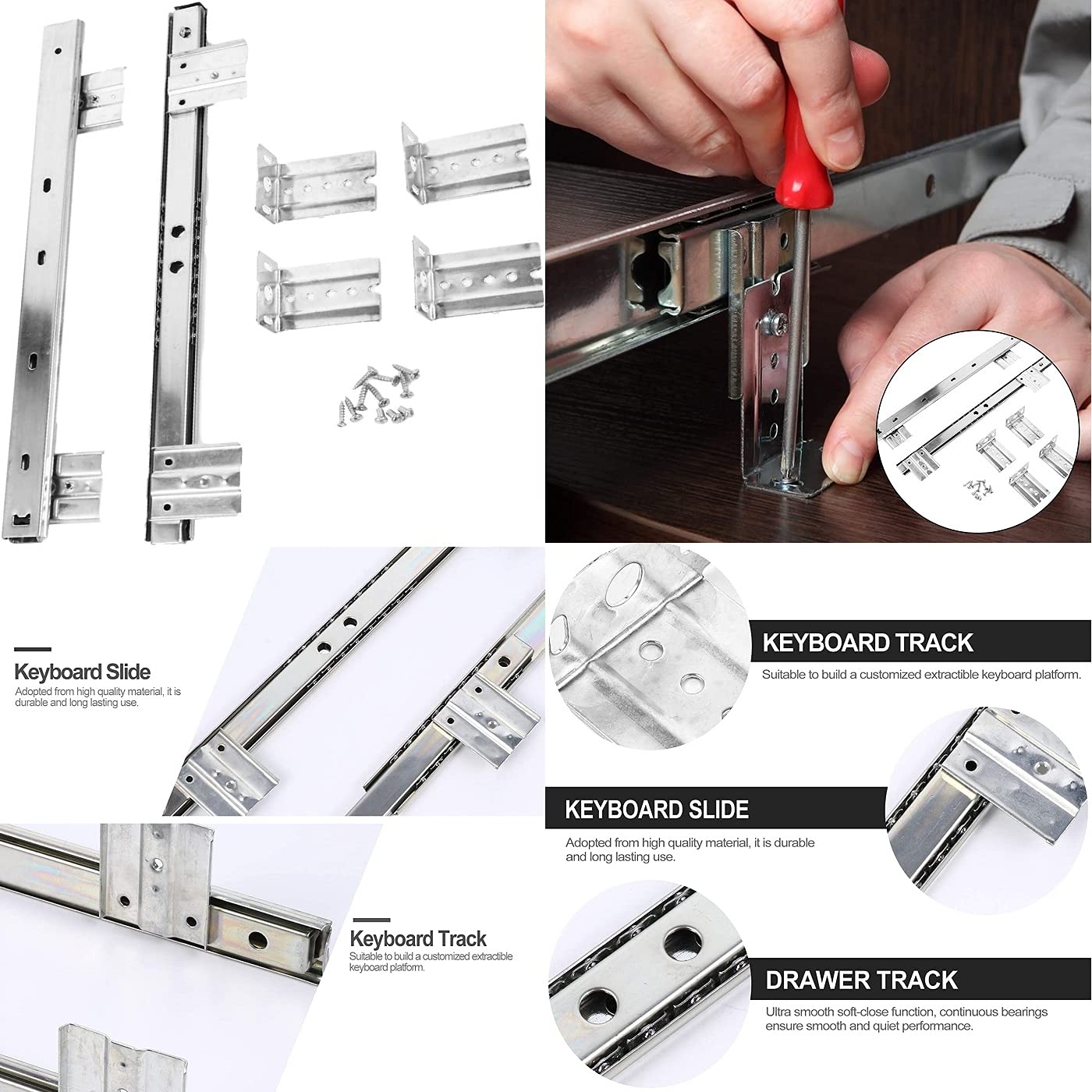 SIMPLE ZERO EFFORT INSTALLATION: Mounting holes are provided on both sides of our keyboard tray, which avoids the difficulty of punching holes in the wood and improves the stability of the keyboard tray and quickly for an easy once for all install.Ball Bearing slides and all hardware are already provided in the package!