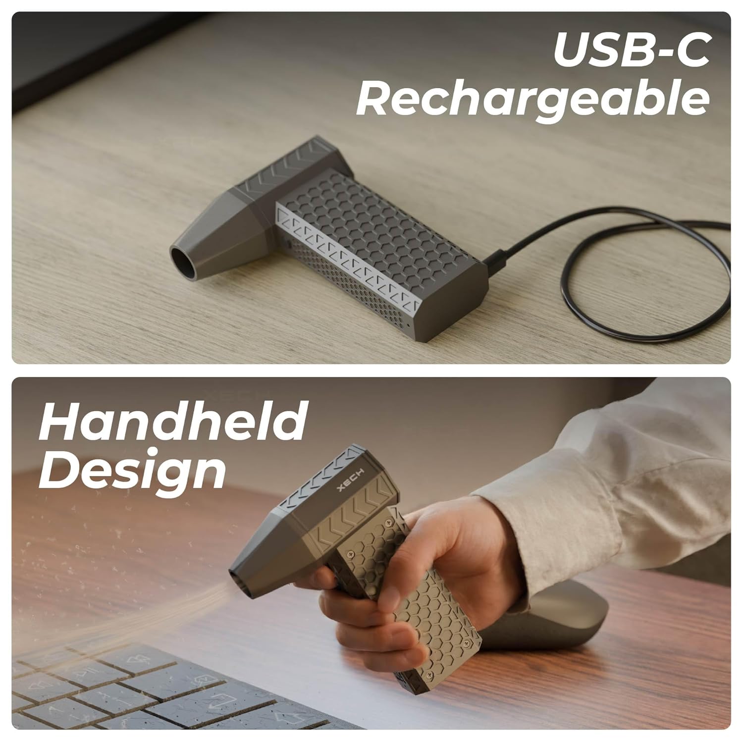 XECH Mini Handheld High Speed Air Duster 140000 RPM, Rechargeable Type-C, for Cleaning Computers, Cars, Backyard and Home Appliances, Cordless & Compact, Adjustable Speed (X-Jet)