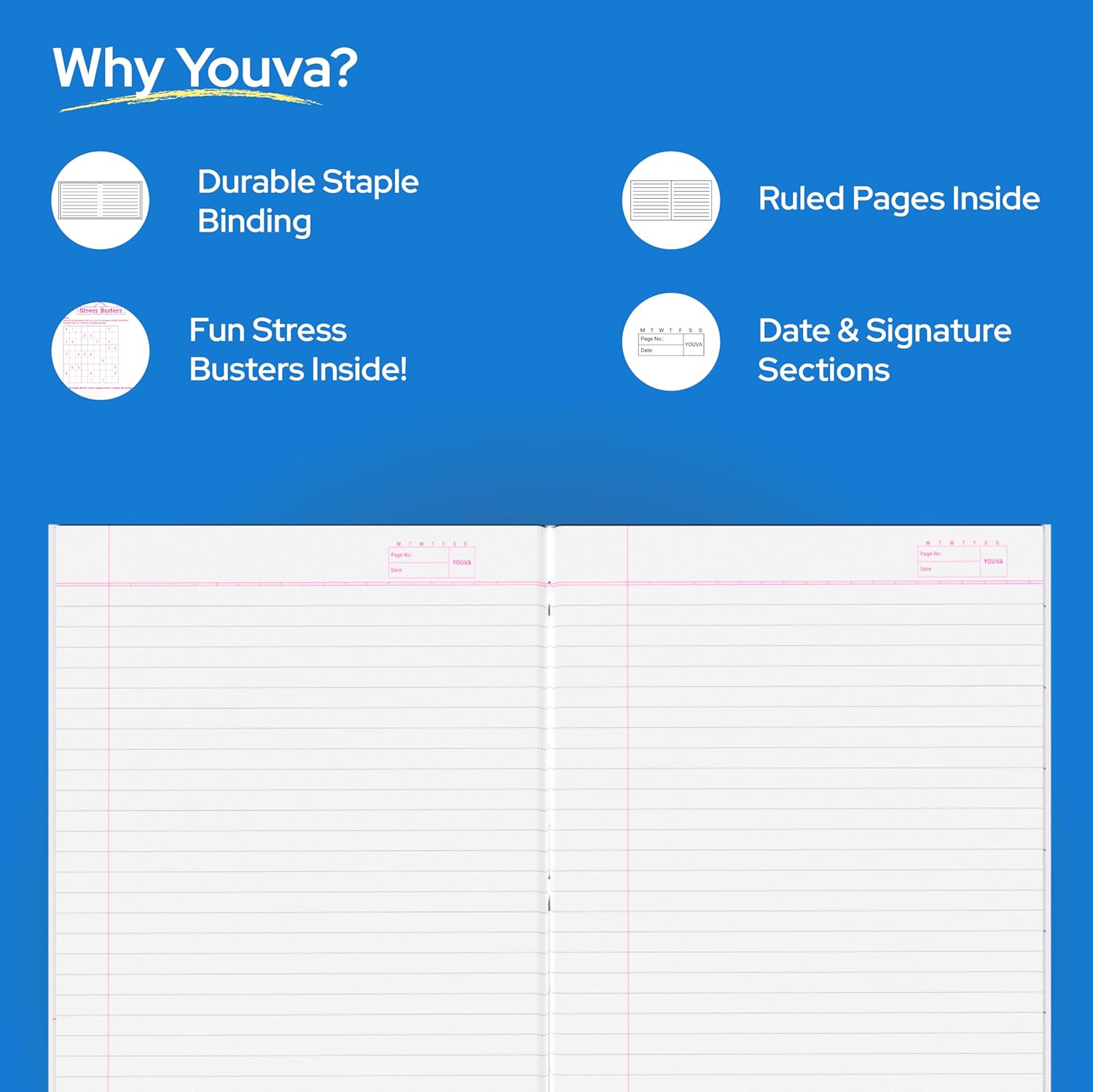 Youva’s long notebooks come with classy cover designs in brighter colours that will appeal to today’s youth